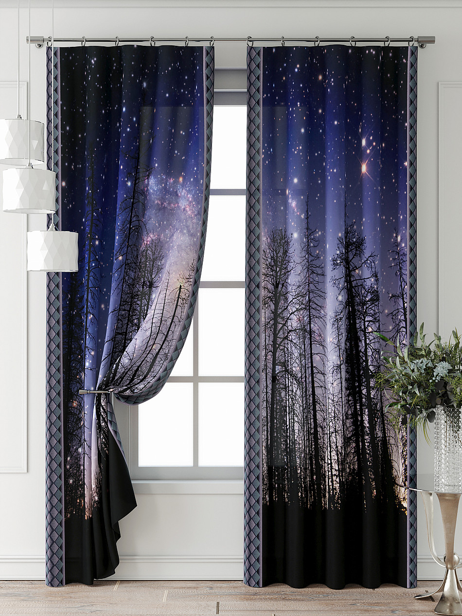 Портьера 2 шт. Подхват - доп.услуга. Комплект штор из легкой портьерной ткани (габардин) оформлен печатным рисунком. Печатный рисунок дает широкие возможности обновить интерьер фактически нет требуя ремонта за счет огромного выбора. Ткани с печатным рисунком безопасны и не содержат токсичных веществ. Не смотря на то что, материал легкий, он имеет высокую плотность, мало загрязнятся и не требует особого ухода даже после стирки, что важно для кухонных занавесок. Шторы не выцветают, не растягиваются, превосходно драпируются, образуя струящиеся складки. Прекрасное решение для создания красоты и уюта с помощью уникальных дизайнов.