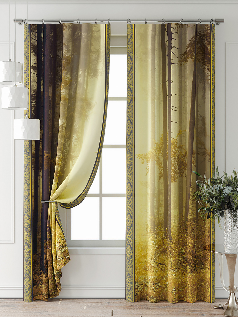 Портьера 2 шт. Подхват - доп.услуга. Комплект штор из легкой портьерной ткани (габардин) оформлен печатным рисунком. Печатный рисунок дает широкие возможности обновить интерьер фактически нет требуя ремонта за счет огромного выбора. Ткани с печатным рисунком безопасны и не содержат токсичных веществ. Не смотря на то что, материал легкий, он имеет высокую плотность, мало загрязнятся и не требует особого ухода даже после стирки, что важно для кухонных занавесок. Шторы не выцветают, не растягиваются, превосходно драпируются, образуя струящиеся складки. Прекрасное решение для создания красоты и уюта с помощью уникальных дизайнов.