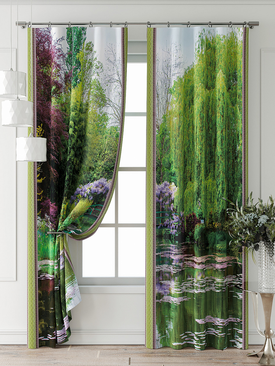 Портьера 2 шт. Подхват - доп.услуга. Комплект штор из легкой портьерной ткани (габардин) оформлен печатным рисунком. Печатный рисунок дает широкие возможности обновить интерьер фактически нет требуя ремонта за счет огромного выбора. Ткани с печатным рисунком безопасны и не содержат токсичных веществ. Не смотря на то что, материал легкий, он имеет высокую плотность, мало загрязнятся и не требует особого ухода даже после стирки, что важно для кухонных занавесок. Шторы не выцветают, не растягиваются, превосходно драпируются, образуя струящиеся складки. Прекрасное решение для создания красоты и уюта с помощью уникальных дизайнов.