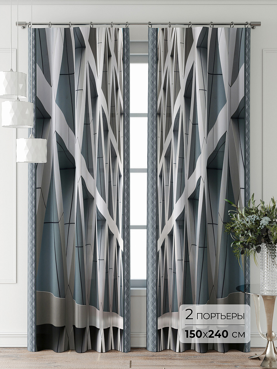 Портьера 2 шт. Подхват - доп.услуга. Комплект штор из легкой портьерной ткани (габардин) оформлен печатным рисунком. Печатный рисунок дает широкие возможности обновить интерьер фактически нет требуя ремонта за счет огромного выбора. Ткани с печатным рисунком безопасны и не содержат токсичных веществ. Не смотря на то что, материал легкий, он имеет высокую плотность, мало загрязнятся и не требует особого ухода даже после стирки, что важно для кухонных занавесок. Шторы не выцветают, не растягиваются, превосходно драпируются, образуя струящиеся складки. Прекрасное решение для создания красоты и уюта с помощью уникальных дизайнов.