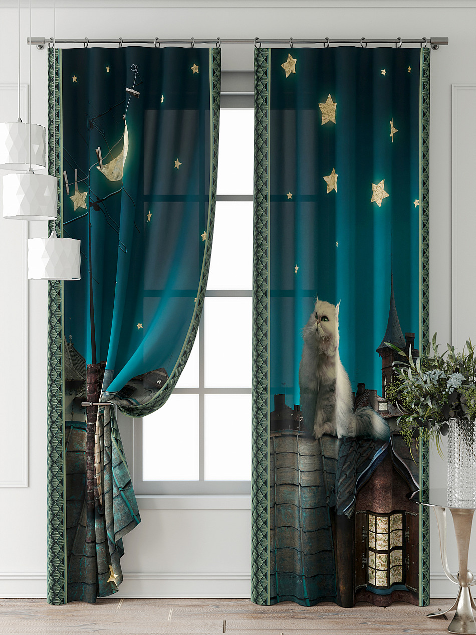 Портьера 2 шт. Подхват - доп.услуга. Комплект штор из легкой портьерной ткани (габардин) оформлен печатным рисунком. Печатный рисунок дает широкие возможности обновить интерьер фактически нет требуя ремонта за счет огромного выбора. Ткани с печатным рисунком безопасны и не содержат токсичных веществ. Не смотря на то что, материал легкий, он имеет высокую плотность, мало загрязнятся и не требует особого ухода даже после стирки, что важно для кухонных занавесок. Шторы не выцветают, не растягиваются, превосходно драпируются, образуя струящиеся складки. Прекрасное решение для создания красоты и уюта с помощью уникальных дизайнов.