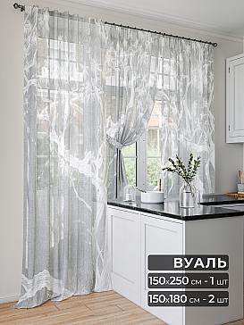 Вуаль 150х250 см — 1 шт., вуаль 150х180 см — 2 шт. ( Уменьшить высоту ) Крепление: шторная лента (крючки), кулиска Подробнее