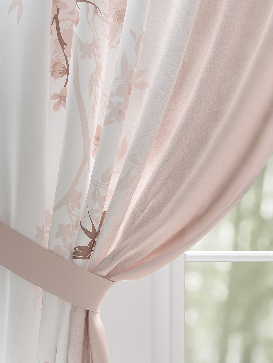 Комплект штор из легкой портьерной ткани (габардин) оформлен печатным рисунком. Печатный рисунок дает широкие возможности обновить интерьер фактически нет требуя ремонта за счет огромного выбора. Ткани с печатным рисунком безопасны и не содержат токсичных веществ. Не смотря на то что, материал легкий, он имеет высокую плотность, мало загрязнятся и не требует особого ухода даже после стирки, что важно для кухонных занавесок. Шторы не выцветают, не растягиваются, превосходно драпируются, образуя струящиеся складки. Прекрасное решение для создания красоты и уюта с помощью уникальных дизайнов.