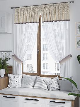 Комплект штор из белой вуали дополнен портьерной тканью (габардин) с печатным рисунком. Шторы не выцветают, не растягиваются, превосходно драпируются образуя струящиеся складки. Прекрасное решение для создания красоты и уюта с помощью уникальных дизайнов.