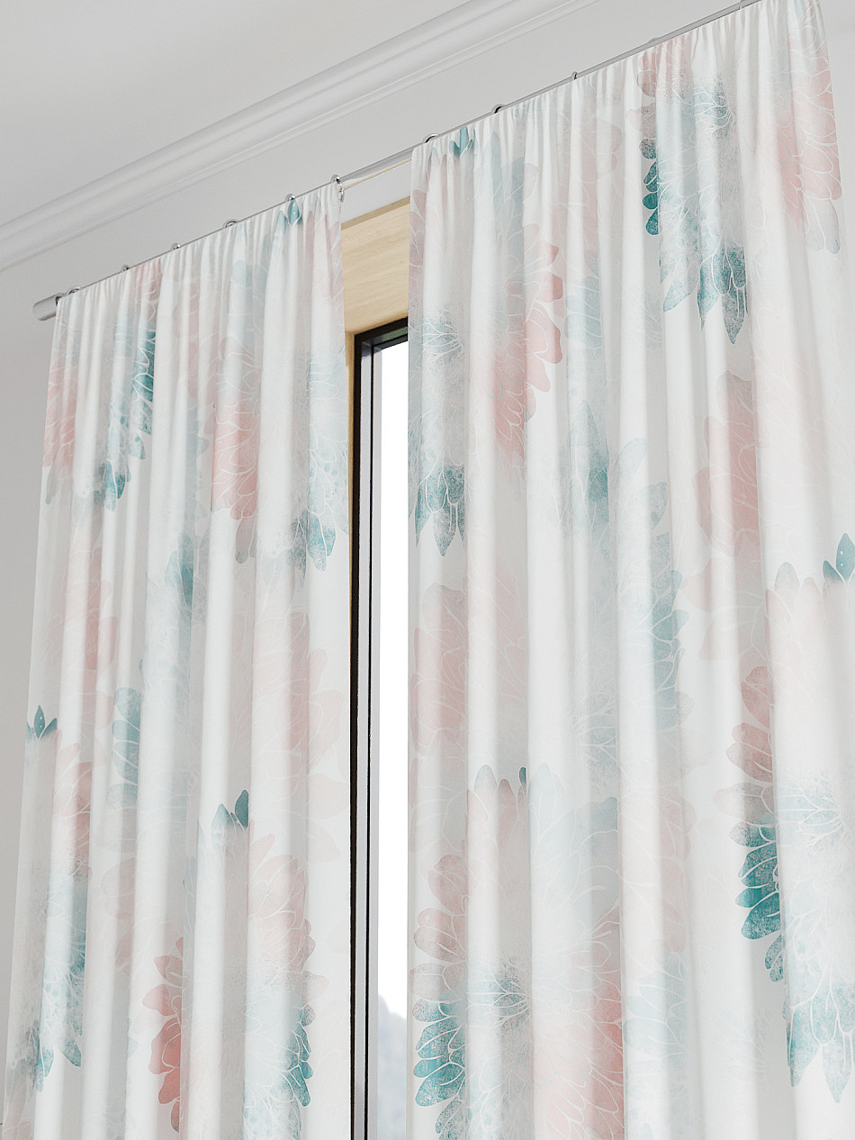 По верхнему краю портьеры пришита шторная тесьма 6 см, с ее помощью затянув узелки от кордовых нитей с обеих сторон и стянув их до нужного размера можно сформировать округлые складки, далее вставить крючки в кармашки и повесить на карниз. Обязательно проверьте кордовые нити – они должны быть надежно завязаны, в противном случае во время стягивания они могут вылететь. Шторная тесьма имеет два ряда кармашков, с их помощью можно регулировать не только длину, но и ширину. Такое крепление подходит для всех типов карнизов.