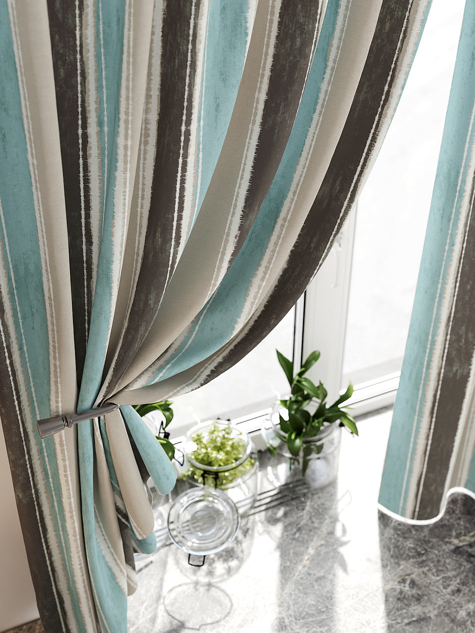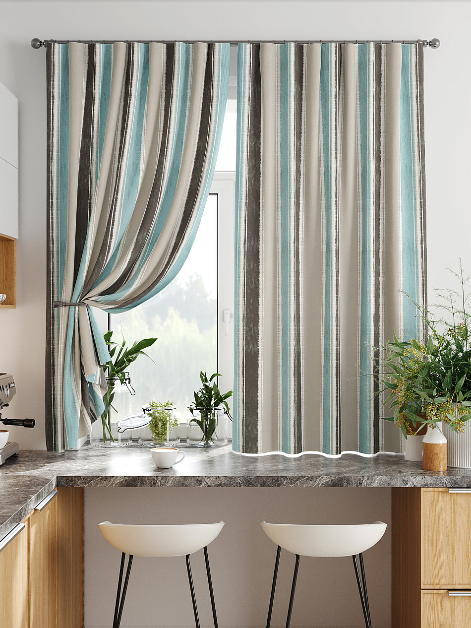 Комплект штор из легкой портьерной ткани (габардин) оформлен печатным рисунком. Печатный рисунок дает широкие возможности обновить интерьер фактически нет требуя ремонта за счет огромного выбора. Ткани с печатным рисунком безопасны и не содержат токсичных веществ. Не смотря на то что, материал легкий, он имеет высокую плотность, мало загрязнятся и не требует особого ухода даже после стирки, что важно для кухонных занавесок. Шторы не выцветают, не растягиваются, превосходно драпируются, образуя струящиеся складки. Прекрасное решение для создания красоты и уюта с помощью уникальных дизайнов.