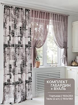 - Состав комплекта Портьера 150х250 см — 1 шт., вуаль 150х180 см — 2 шт.