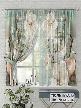 Тюль 2 шт. Подхват - доп.услуга. Легкая основа (вуаль) оформлена принтом. Вуаль с матовой полупрозрачной текстурой. Отличается особым шиком, идеально подходит для создания воздушных штор. Придает ощущение свежести, хорошо пропускает воздух. Ткань неприхотлива в уходе, хорошо стирается без разрушения волокон с течением времени за счет высокого кручения нитей.