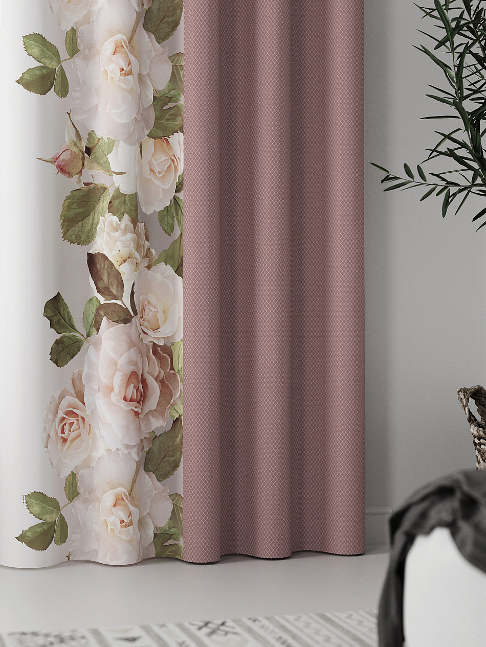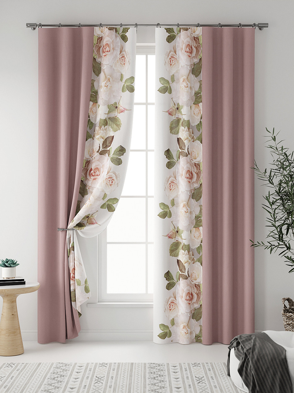 Комплект штор из легкой портьерной ткани (габардин) оформлен печатным рисунком. Печатный рисунок дает широкие возможности обновить интерьер фактически нет требуя ремонта за счет огромного выбора. Ткани с печатным рисунком безопасны и не содержат токсичных веществ. Не смотря на то что, материал легкий, он имеет высокую плотность, мало загрязнятся и не требует особого ухода даже после стирки, что важно для кухонных занавесок. Шторы не выцветают, не растягиваются, превосходно драпируются, образуя струящиеся складки. Прекрасное решение для создания красоты и уюта с помощью уникальных дизайнов.