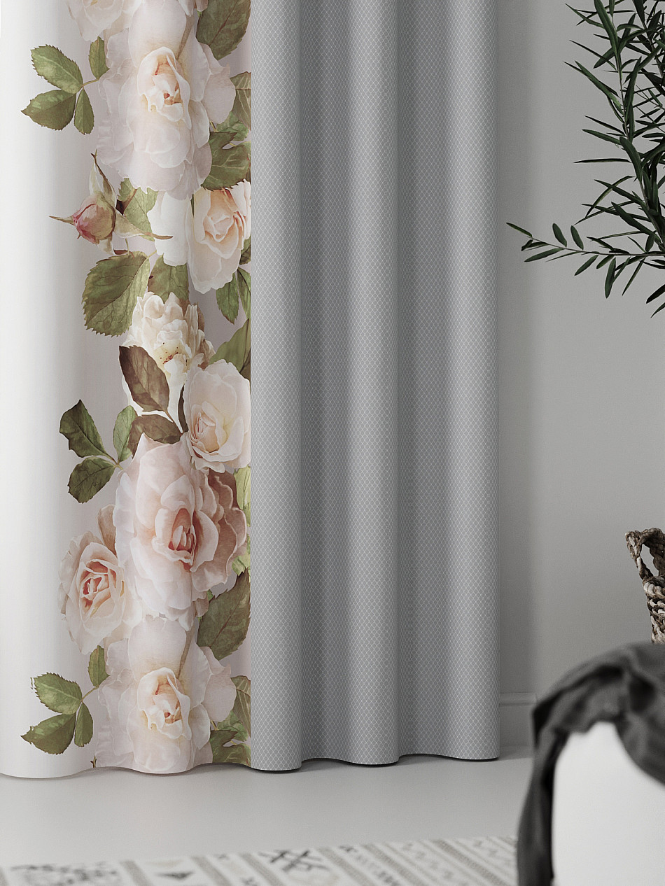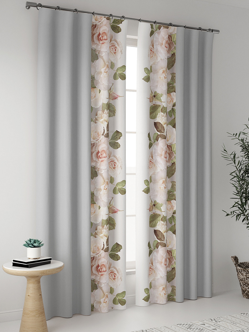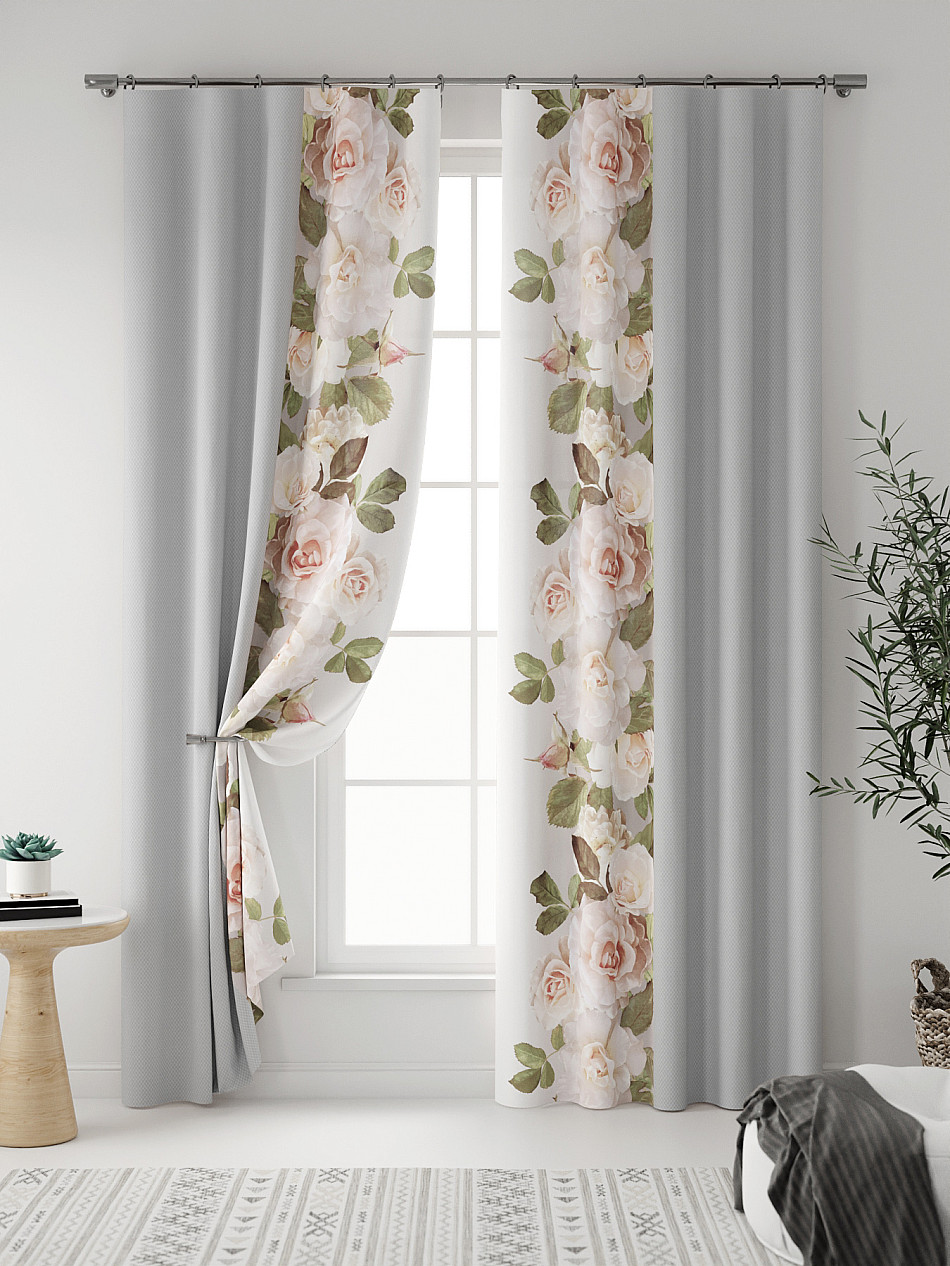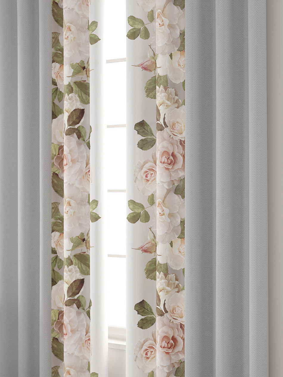 Комплект штор из легкой портьерной ткани (габардин) оформлен печатным рисунком. Печатный рисунок дает широкие возможности обновить интерьер фактически нет требуя ремонта за счет огромного выбора. Ткани с печатным рисунком безопасны и не содержат токсичных веществ. Не смотря на то что, материал легкий, он имеет высокую плотность, мало загрязнятся и не требует особого ухода даже после стирки, что важно для кухонных занавесок. Шторы не выцветают, не растягиваются, превосходно драпируются, образуя струящиеся складки. Прекрасное решение для создания красоты и уюта с помощью уникальных дизайнов.