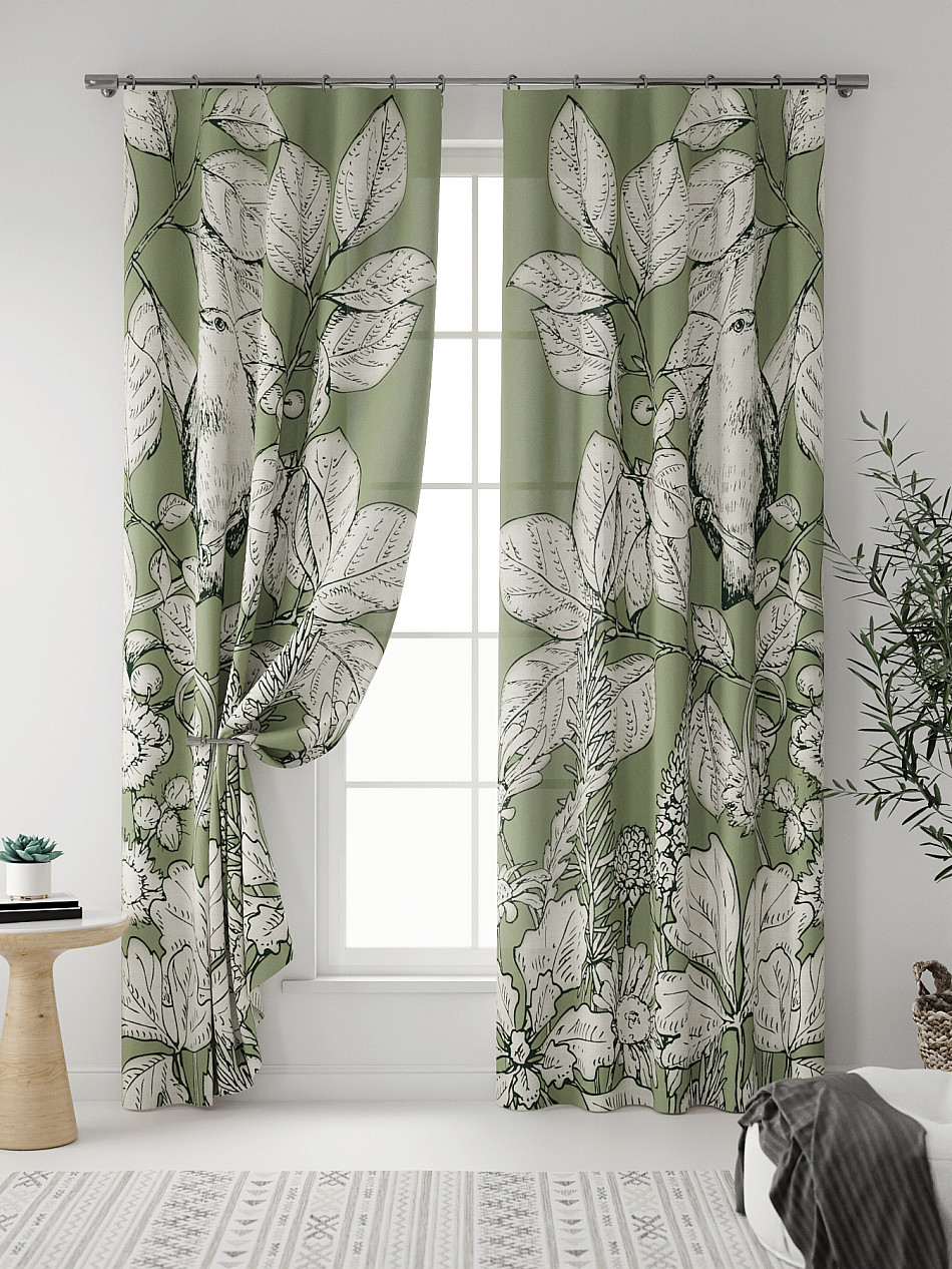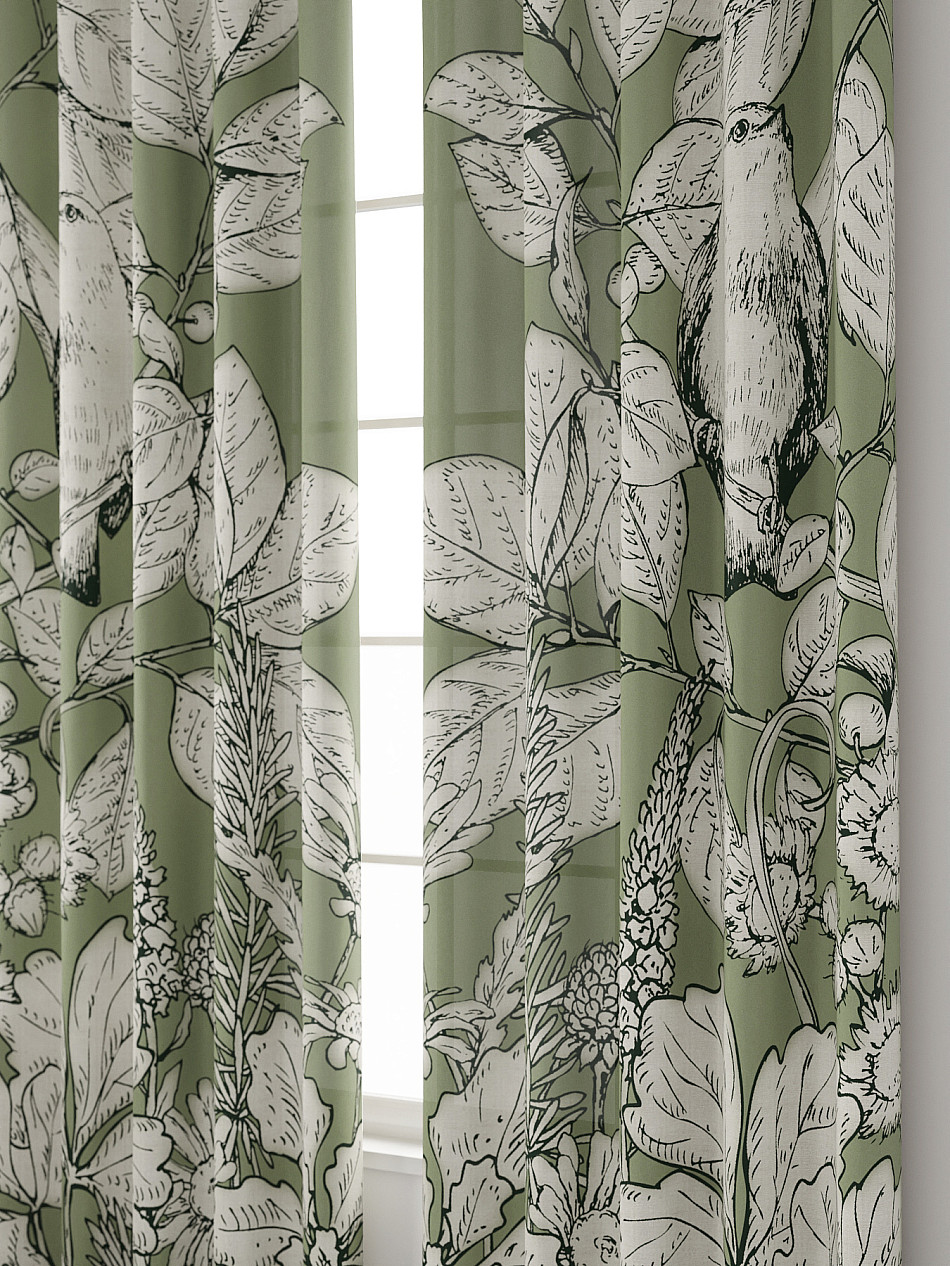 Комплект штор из легкой портьерной ткани (габардин) оформлен печатным рисунком. Печатный рисунок дает широкие возможности обновить интерьер фактически нет требуя ремонта за счет огромного выбора. Ткани с печатным рисунком безопасны и не содержат токсичных веществ. Не смотря на то что, материал легкий, он имеет высокую плотность, мало загрязнятся и не требует особого ухода даже после стирки, что важно для кухонных занавесок. Шторы не выцветают, не растягиваются, превосходно драпируются, образуя струящиеся складки. Прекрасное решение для создания красоты и уюта с помощью уникальных дизайнов.