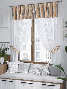 Комплект штор из белой вуали дополнен портьерной тканью (габардин) с печатным рисунком. Шторы не выцветают, не растягиваются, превосходно драпируются образуя струящиеся складки. Прекрасное решение для создания красоты и уюта с помощью уникальных дизайнов.