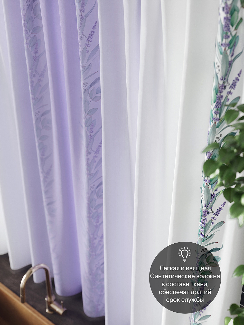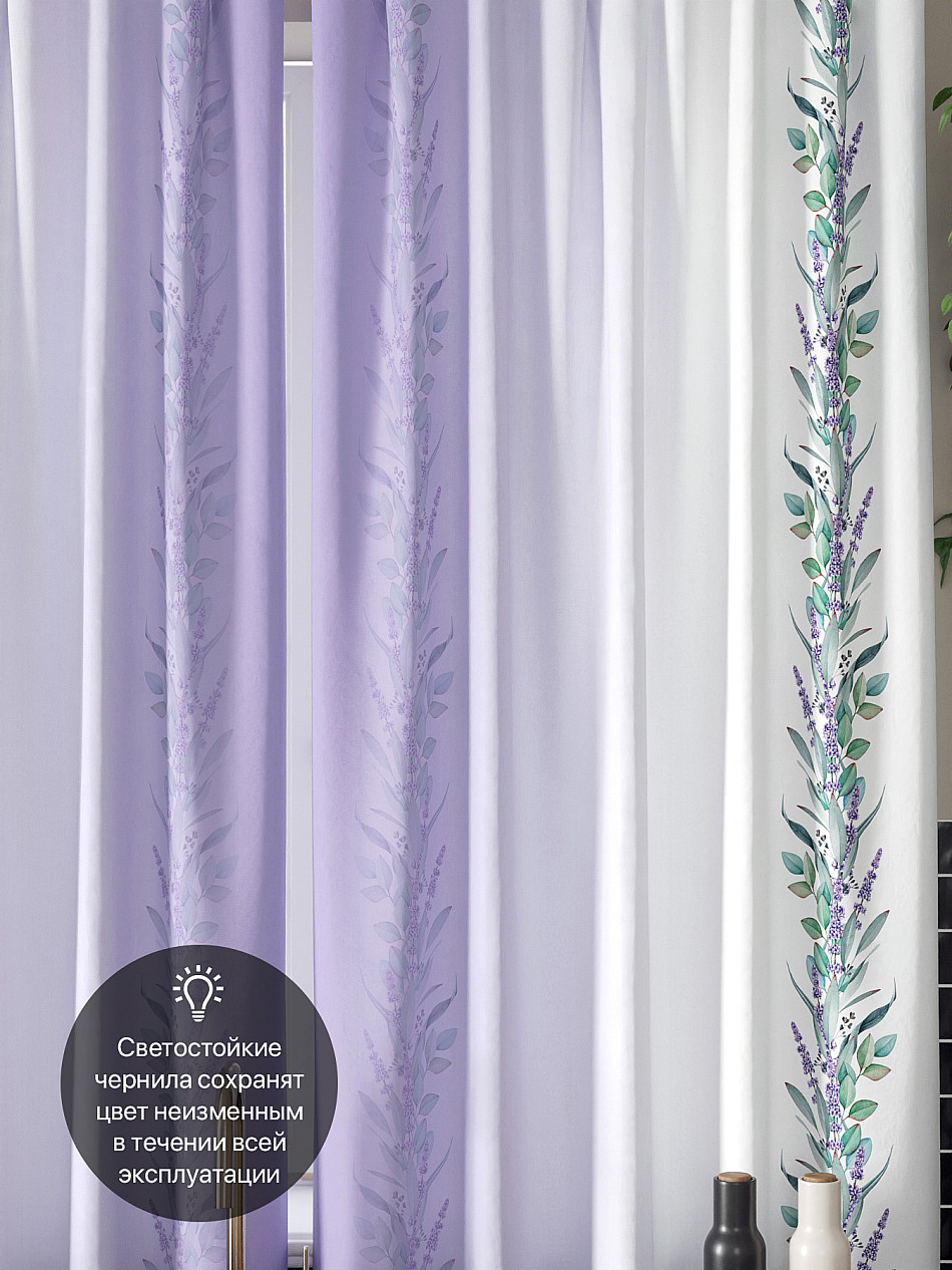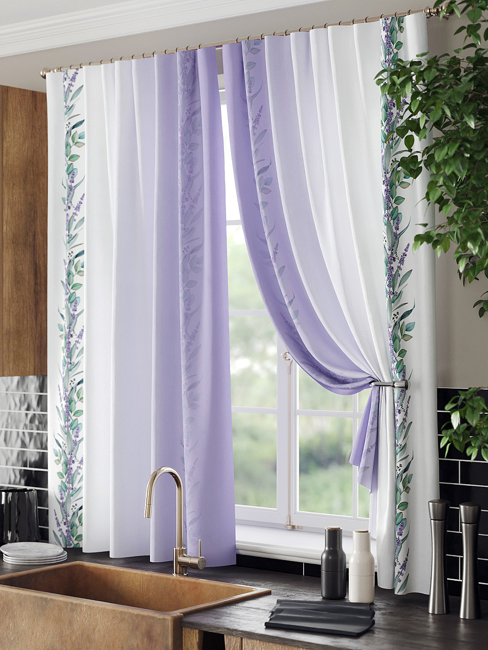 Комплект штор из легкой портьерной ткани (габардин) оформлен печатным рисунком. Печатный рисунок дает широкие возможности обновить интерьер фактически нет требуя ремонта за счет огромного выбора. Ткани с печатным рисунком безопасны и не содержат токсичных веществ. Не смотря на то что, материал легкий, он имеет высокую плотность, мало загрязнятся и не требует особого ухода даже после стирки, что важно для кухонных занавесок. Шторы не выцветают, не растягиваются, превосходно драпируются, образуя струящиеся складки. Прекрасное решение для создания красоты и уюта с помощью уникальных дизайнов.