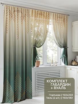 Портьера 150х250 см — 1 шт., вуаль 150х180 см — 2 шт. ( Уменьшить высоту ) Крепление: шторная лента (крючки), кулиска Подробнее