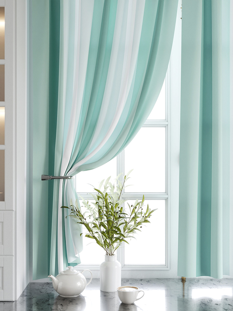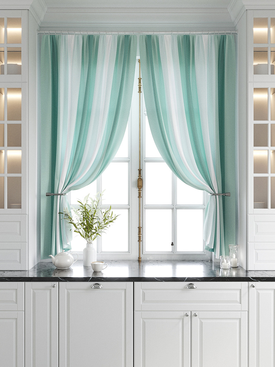 Комплект штор из легкой портьерной ткани (габардин) оформлен печатным рисунком. Печатный рисунок дает широкие возможности обновить интерьер фактически нет требуя ремонта за счет огромного выбора. Ткани с печатным рисунком безопасны и не содержат токсичных веществ. Не смотря на то что, материал легкий, он имеет высокую плотность, мало загрязнятся и не требует особого ухода даже после стирки, что важно для кухонных занавесок. Шторы не выцветают, не растягиваются, превосходно драпируются, образуя струящиеся складки. Прекрасное решение для создания красоты и уюта с помощью уникальных дизайнов.