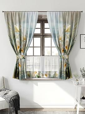 Комплект штор из легкой портьерной ткани (габардин) оформлен печатным рисунком. Печатный рисунок дает широкие возможности обновить интерьер фактически нет требуя ремонта за счет огромного выбора. Ткани с печатным рисунком безопасны и не содержат токсичных веществ. Не смотря на то что, материал легкий, он имеет высокую плотность, мало загрязнятся и не требует особого ухода даже после стирки, что важно для кухонных занавесок. Шторы не выцветают, не растягиваются, превосходно драпируются, образуя струящиеся складки. Прекрасное решение для создания красоты и уюта с помощью уникальных дизайнов.