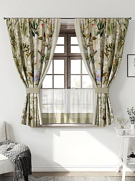 Комплект штор из легкой портьерной ткани (габардин) оформлен печатным рисунком. Печатный рисунок дает широкие возможности обновить интерьер фактически нет требуя ремонта за счет огромного выбора. Ткани с печатным рисунком безопасны и не содержат токсичных веществ. Не смотря на то что, материал легкий, он имеет высокую плотность, мало загрязнятся и не требует особого ухода даже после стирки, что важно для кухонных занавесок. Шторы не выцветают, не растягиваются, превосходно драпируются, образуя струящиеся складки. Прекрасное решение для создания красоты и уюта с помощью уникальных дизайнов.