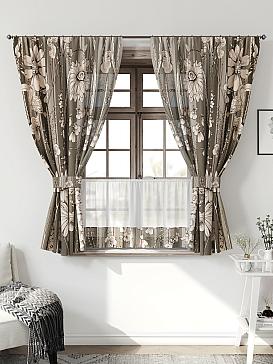 Комплект штор из легкой портьерной ткани (габардин) оформлен печатным рисунком. Печатный рисунок дает широкие возможности обновить интерьер фактически нет требуя ремонта за счет огромного выбора. Ткани с печатным рисунком безопасны и не содержат токсичных веществ. Не смотря на то что, материал легкий, он имеет высокую плотность, мало загрязнятся и не требует особого ухода даже после стирки, что важно для кухонных занавесок. Шторы не выцветают, не растягиваются, превосходно драпируются, образуя струящиеся складки. Прекрасное решение для создания красоты и уюта с помощью уникальных дизайнов.