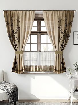 Комплект штор из легкой портьерной ткани (габардин) оформлен печатным рисунком. Печатный рисунок дает широкие возможности обновить интерьер фактически нет требуя ремонта за счет огромного выбора. Ткани с печатным рисунком безопасны и не содержат токсичных веществ. Не смотря на то что, материал легкий, он имеет высокую плотность, мало загрязнятся и не требует особого ухода даже после стирки, что важно для кухонных занавесок. Шторы не выцветают, не растягиваются, превосходно драпируются, образуя струящиеся складки. Прекрасное решение для создания красоты и уюта с помощью уникальных дизайнов.