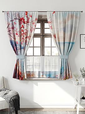 Комплект штор из легкой портьерной ткани (габардин) оформлен печатным рисунком. Печатный рисунок дает широкие возможности обновить интерьер фактически нет требуя ремонта за счет огромного выбора. Ткани с печатным рисунком безопасны и не содержат токсичных веществ. Не смотря на то что, материал легкий, он имеет высокую плотность, мало загрязнятся и не требует особого ухода даже после стирки, что важно для кухонных занавесок. Шторы не выцветают, не растягиваются, превосходно драпируются, образуя струящиеся складки. Прекрасное решение для создания красоты и уюта с помощью уникальных дизайнов.