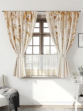 Комплект штор из легкой портьерной ткани (габардин) оформлен печатным рисунком. Печатный рисунок дает широкие возможности обновить интерьер фактически нет требуя ремонта за счет огромного выбора. Ткани с печатным рисунком безопасны и не содержат токсичных веществ. Не смотря на то что, материал легкий, он имеет высокую плотность, мало загрязнятся и не требует особого ухода даже после стирки, что важно для кухонных занавесок. Шторы не выцветают, не растягиваются, превосходно драпируются, образуя струящиеся складки. Прекрасное решение для создания красоты и уюта с помощью уникальных дизайнов.
