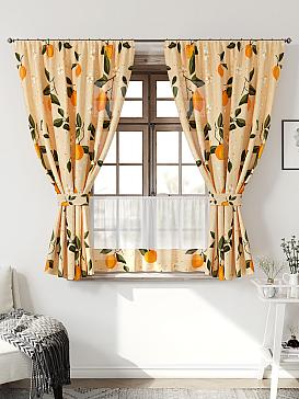 Комплект штор из легкой портьерной ткани (габардин) оформлен печатным рисунком. Печатный рисунок дает широкие возможности обновить интерьер фактически нет требуя ремонта за счет огромного выбора. Ткани с печатным рисунком безопасны и не содержат токсичных веществ. Не смотря на то что, материал легкий, он имеет высокую плотность, мало загрязнятся и не требует особого ухода даже после стирки, что важно для кухонных занавесок. Шторы не выцветают, не растягиваются, превосходно драпируются, образуя струящиеся складки. Прекрасное решение для создания красоты и уюта с помощью уникальных дизайнов.