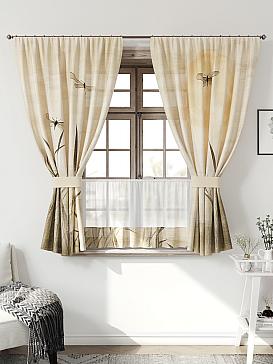 Комплект штор из легкой портьерной ткани (габардин) оформлен печатным рисунком. Печатный рисунок дает широкие возможности обновить интерьер фактически нет требуя ремонта за счет огромного выбора. Ткани с печатным рисунком безопасны и не содержат токсичных веществ. Не смотря на то что, материал легкий, он имеет высокую плотность, мало загрязнятся и не требует особого ухода даже после стирки, что важно для кухонных занавесок. Шторы не выцветают, не растягиваются, превосходно драпируются, образуя струящиеся складки. Прекрасное решение для создания красоты и уюта с помощью уникальных дизайнов.