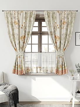 Комплект штор из легкой портьерной ткани (габардин) оформлен печатным рисунком. Печатный рисунок дает широкие возможности обновить интерьер фактически нет требуя ремонта за счет огромного выбора. Ткани с печатным рисунком безопасны и не содержат токсичных веществ. Не смотря на то что, материал легкий, он имеет высокую плотность, мало загрязнятся и не требует особого ухода даже после стирки, что важно для кухонных занавесок. Шторы не выцветают, не растягиваются, превосходно драпируются, образуя струящиеся складки. Прекрасное решение для создания красоты и уюта с помощью уникальных дизайнов.