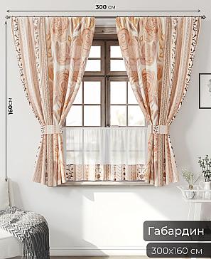 Комплект штор из легкой портьерной ткани (габардин) оформлен печатным рисунком. Печатный рисунок дает широкие возможности обновить интерьер фактически нет требуя ремонта за счет огромного выбора. Ткани с печатным рисунком безопасны и не содержат токсичных веществ. Не смотря на то что, материал легкий, он имеет высокую плотность, мало загрязнятся и не требует особого ухода даже после стирки, что важно для кухонных занавесок. Шторы не выцветают, не растягиваются, превосходно драпируются, образуя струящиеся складки. Прекрасное решение для создания красоты и уюта с помощью уникальных дизайнов.