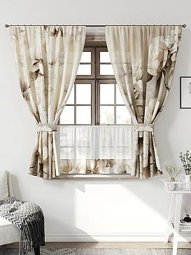 Комплект штор из легкой портьерной ткани (габардин) оформлен печатным рисунком. Печатный рисунок дает широкие возможности обновить интерьер фактически нет требуя ремонта за счет огромного выбора. Ткани с печатным рисунком безопасны и не содержат токсичных веществ. Не смотря на то что, материал легкий, он имеет высокую плотность, мало загрязнятся и не требует особого ухода даже после стирки, что важно для кухонных занавесок. Шторы не выцветают, не растягиваются, превосходно драпируются, образуя струящиеся складки. Прекрасное решение для создания красоты и уюта с помощью уникальных дизайнов.