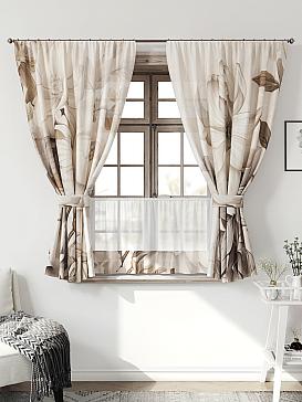 Комплект штор из легкой портьерной ткани (габардин) оформлен печатным рисунком. Печатный рисунок дает широкие возможности обновить интерьер фактически нет требуя ремонта за счет огромного выбора. Ткани с печатным рисунком безопасны и не содержат токсичных веществ. Не смотря на то что, материал легкий, он имеет высокую плотность, мало загрязнятся и не требует особого ухода даже после стирки, что важно для кухонных занавесок. Шторы не выцветают, не растягиваются, превосходно драпируются, образуя струящиеся складки. Прекрасное решение для создания красоты и уюта с помощью уникальных дизайнов.