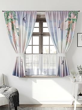 Комплект штор из легкой портьерной ткани (габардин) оформлен печатным рисунком. Печатный рисунок дает широкие возможности обновить интерьер фактически нет требуя ремонта за счет огромного выбора. Ткани с печатным рисунком безопасны и не содержат токсичных веществ. Не смотря на то что, материал легкий, он имеет высокую плотность, мало загрязнятся и не требует особого ухода даже после стирки, что важно для кухонных занавесок. Шторы не выцветают, не растягиваются, превосходно драпируются, образуя струящиеся складки. Прекрасное решение для создания красоты и уюта с помощью уникальных дизайнов.