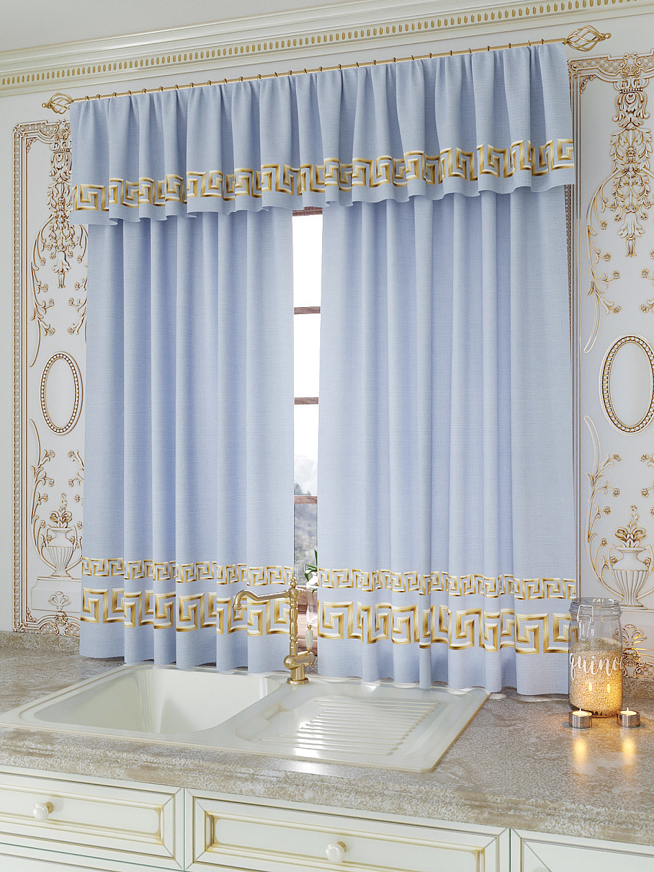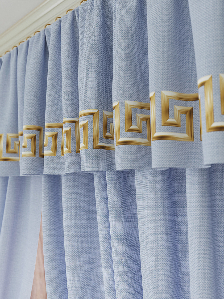 Ламбрекен: легкая основа (Габардин). Ширина — 300 см, высота — 40 см, крепление — шторная лента (крючки).