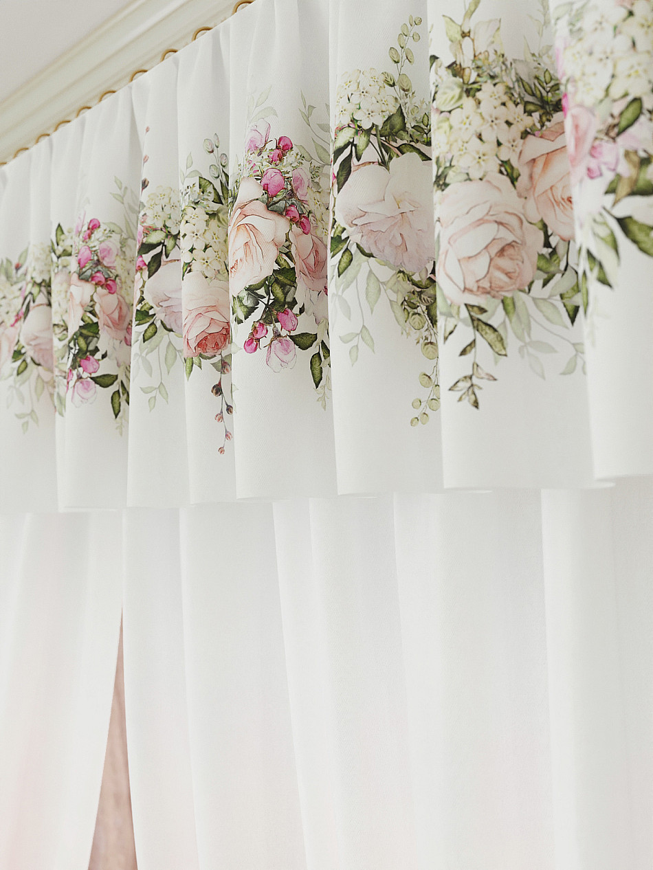 Ламбрекен: легкая основа (Габардин). Ширина — 300 см, высота — 40 см, крепление — шторная лента (крючки).