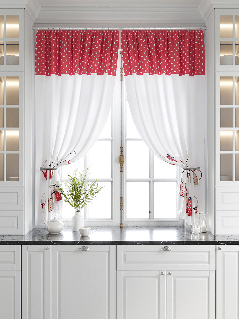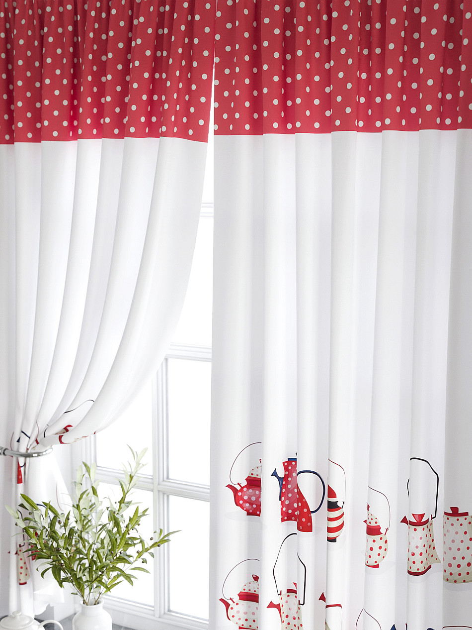 Комплект штор из легкой портьерной ткани (габардин) оформлен печатным рисунком. Печатный рисунок дает широкие возможности обновить интерьер фактически нет требуя ремонта за счет огромного выбора. Ткани с печатным рисунком безопасны и не содержат токсичных веществ. Не смотря на то что, материал легкий, он имеет высокую плотность, мало загрязнятся и не требует особого ухода даже после стирки, что важно для кухонных занавесок. Шторы не выцветают, не растягиваются, превосходно драпируются, образуя струящиеся складки. Прекрасное решение для создания красоты и уюта с помощью уникальных дизайнов.
