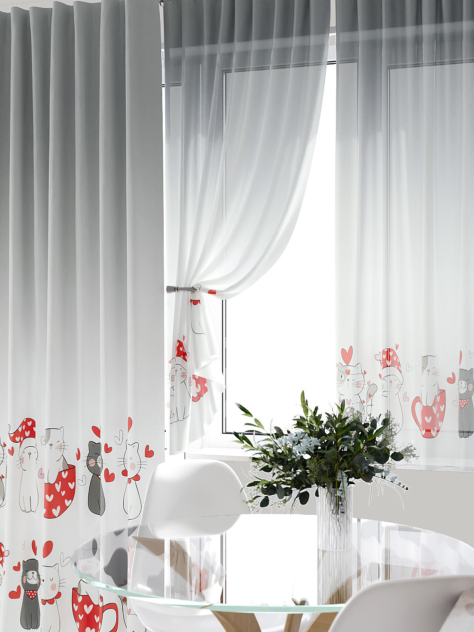 Портьера 1 шт. Подхват - доп.услуга. Комплект для интерьера с балконной дверью, состоит из легкой портьеры для двери и тюли для окна. Оригинальная ассиметричная конструкция оживит любое помещение. Красивая одиночная портьера украсит балконный проём и обеспечит удобный доступ к двери. Легкая вуаль с пышными складками создаст воздушный образ окна и защитит от прямых солнечных лучей, мягко рассеивая свет.