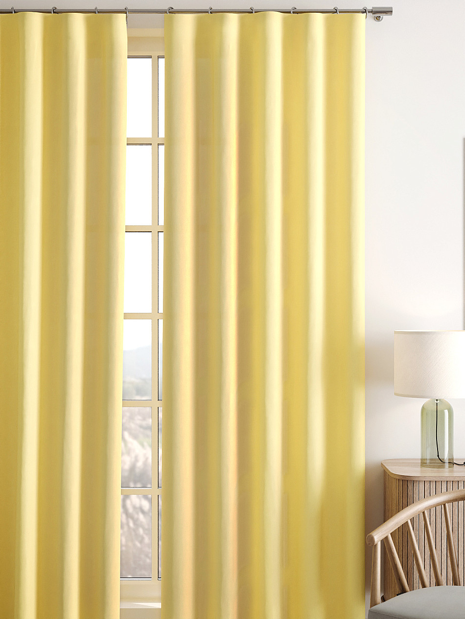 По верхнему краю портьеры пришита шторная тесьма 6 см, с ее помощью затянув узелки от кордовых нитей с обеих сторон и стянув их до нужного размера можно сформировать округлые складки, далее вставить крючки в кармашки и повесить на карниз. Обязательно проверьте кордовые нити – они должны быть надежно завязаны, в противном случае во время стягивания они могут вылететь. Шторная тесьма имеет два ряда кармашков, с их помощью можно регулировать не только длину, но и ширину. Такое крепление подходит для всех типов карнизов.