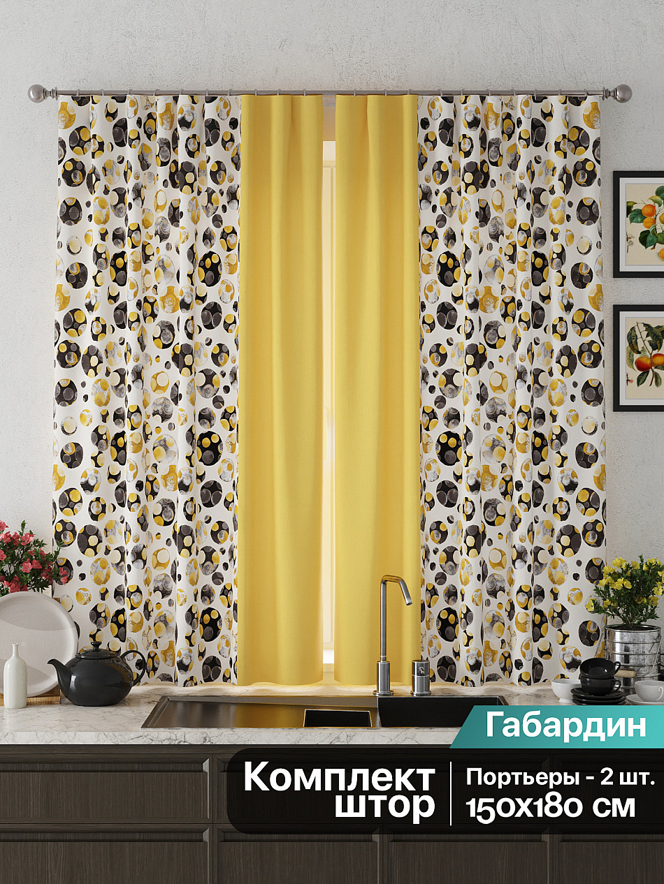 Портьеры 2 шт: Комплект штор из легкой портьерной ткани (габардин) оформлен печатным рисунком. Печатный рисунок дает широкие возможности обновить интерьер фактически нет требуя ремонта за счет огромного выбора. Ткани с печатным рисунком безопасны и не содержат токсичных веществ. Не смотря на то что, материал легкий, он имеет высокую плотность, мало загрязнятся и не требует особого ухода даже после стирки, что важно для кухонных занавесок. Шторы не выцветают, не растягиваются, превосходно драпируются, образуя струящиеся складки. Прекрасное решение для создания красоты и уюта с помощью уникальных дизайнов.