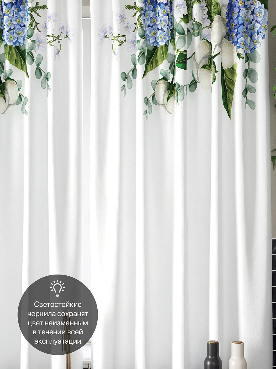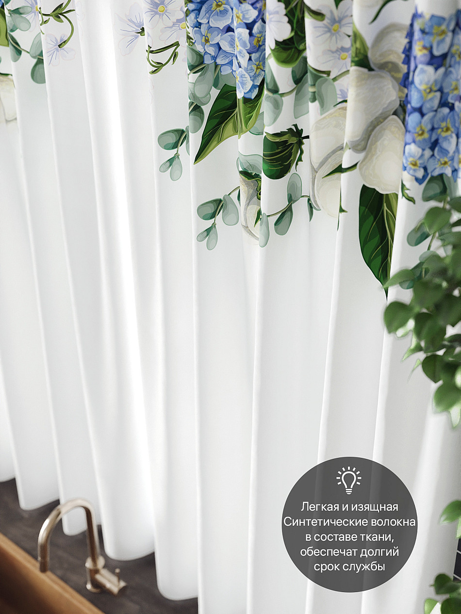 Комплект штор из легкой портьерной ткани (габардин) оформлен печатным рисунком. Печатный рисунок дает широкие возможности обновить интерьер фактически нет требуя ремонта за счет огромного выбора. Ткани с печатным рисунком безопасны и не содержат токсичных веществ. Не смотря на то что, материал легкий, он имеет высокую плотность, мало загрязнятся и не требует особого ухода даже после стирки, что важно для кухонных занавесок. Шторы не выцветают, не растягиваются, превосходно драпируются, образуя струящиеся складки. Прекрасное решение для создания красоты и уюта с помощью уникальных дизайнов.