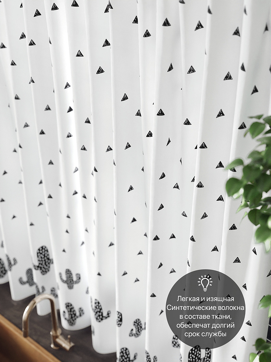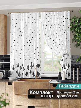 Комплект штор из легкой портьерной ткани (габардин) оформлен печатным рисунком. Печатный рисунок дает широкие возможности обновить интерьер фактически нет требуя ремонта за счет огромного выбора. Ткани с печатным рисунком безопасны и не содержат токсичных веществ. Не смотря на то что, материал легкий, он имеет высокую плотность, мало загрязнятся и не требует особого ухода даже после стирки, что важно для кухонных занавесок. Шторы не выцветают, не растягиваются, превосходно драпируются, образуя струящиеся складки. Прекрасное решение для создания красоты и уюта с помощью уникальных дизайнов.