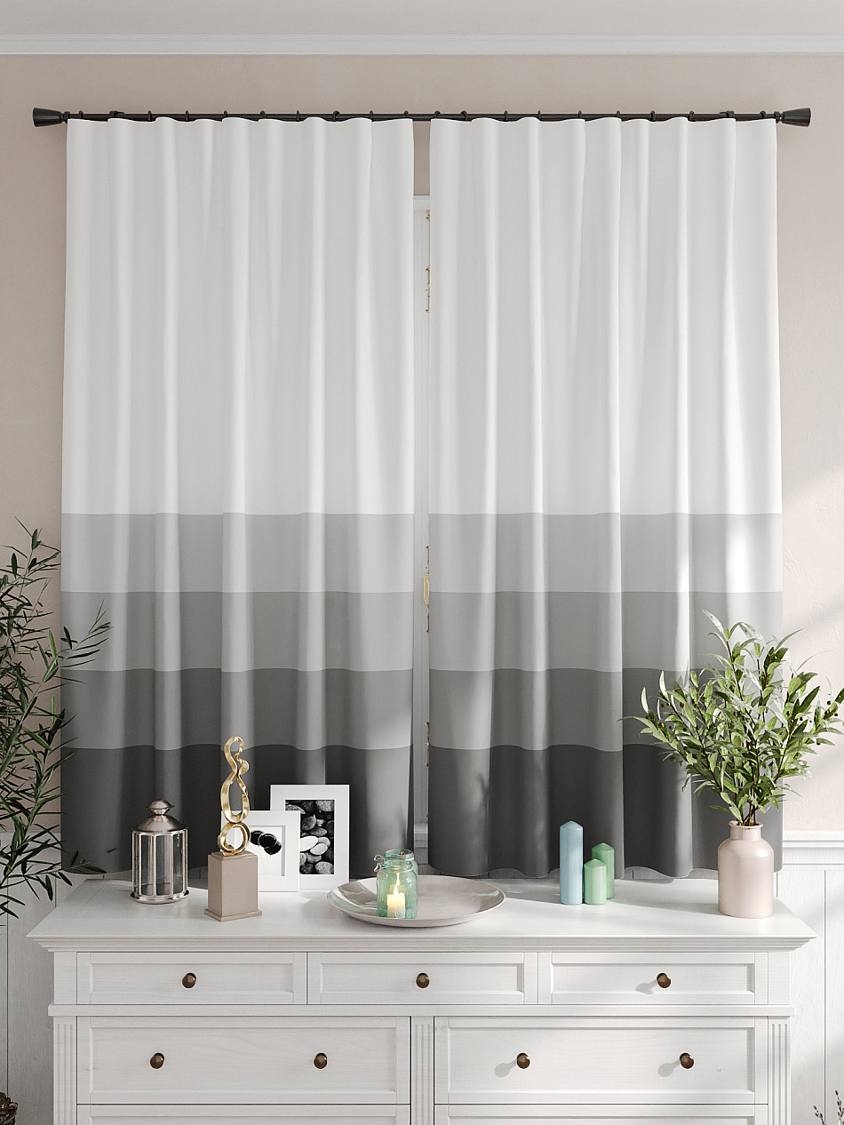 Портьеры 2 шт. Комплект штор из легкой портьерной ткани (габардин) оформлен печатным рисунком. Печатный рисунок дает широкие возможности обновить интерьер фактически не требуя ремонта за счет огромного выбора. Ткани с печатным рисунком безопасны и не содержат токсичных веществ. Не смотря на то, что материал легкий, он имеет высокую плотность, мало загрязнятся и не требует особого ухода даже после стирки, что важно для кухонных занавесок. Шторы не выцветают, не растягиваются, превосходно драпируются, образуя струящиеся складки. Прекрасное решение для создания красоты и уюта с помощью уникальных дизайнов.