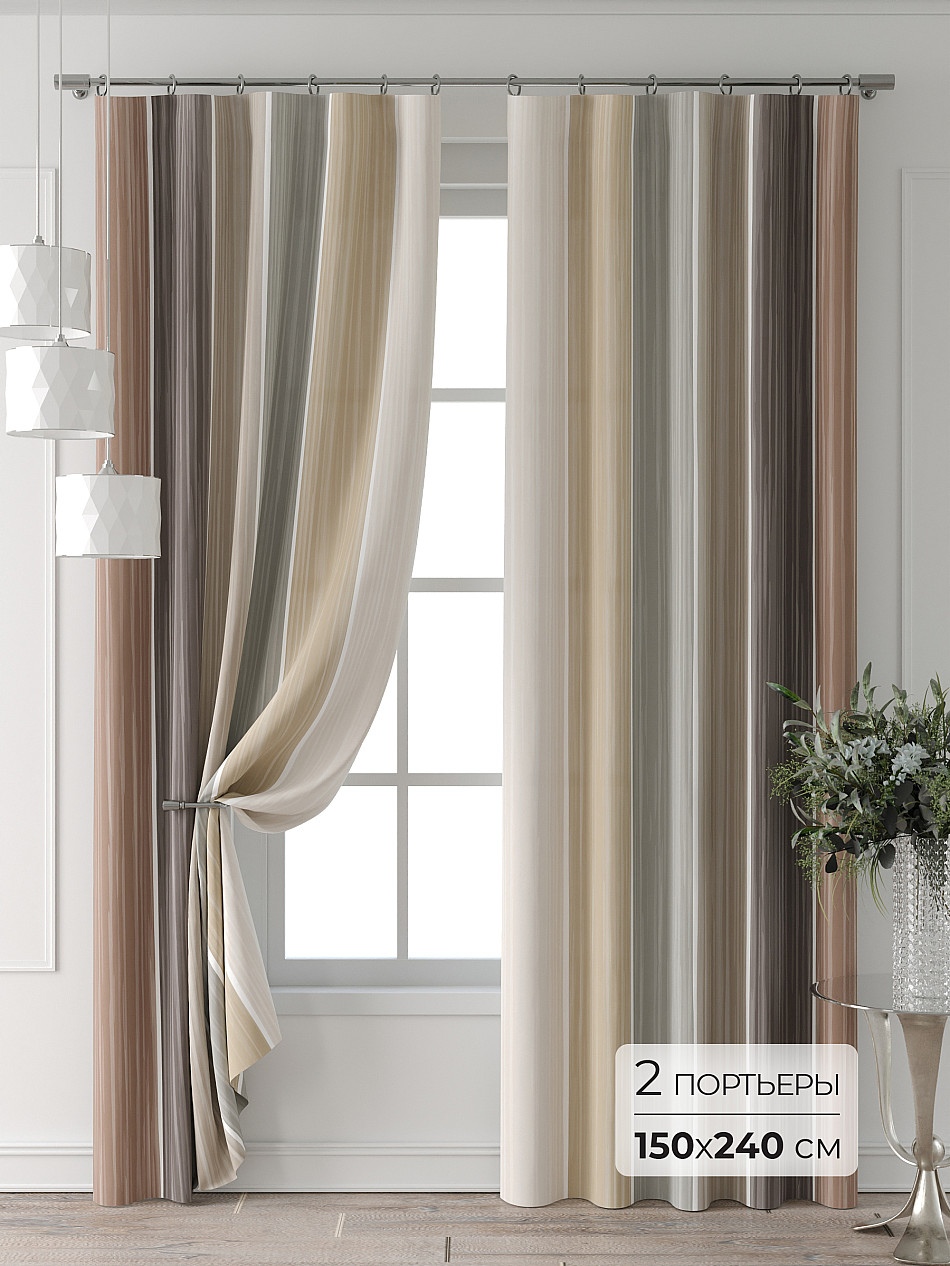 Портьера 150х240 см — 2 шт. ( Изменить высоту) Крепление: шторная лента (крючки), кулиска Подробнее
