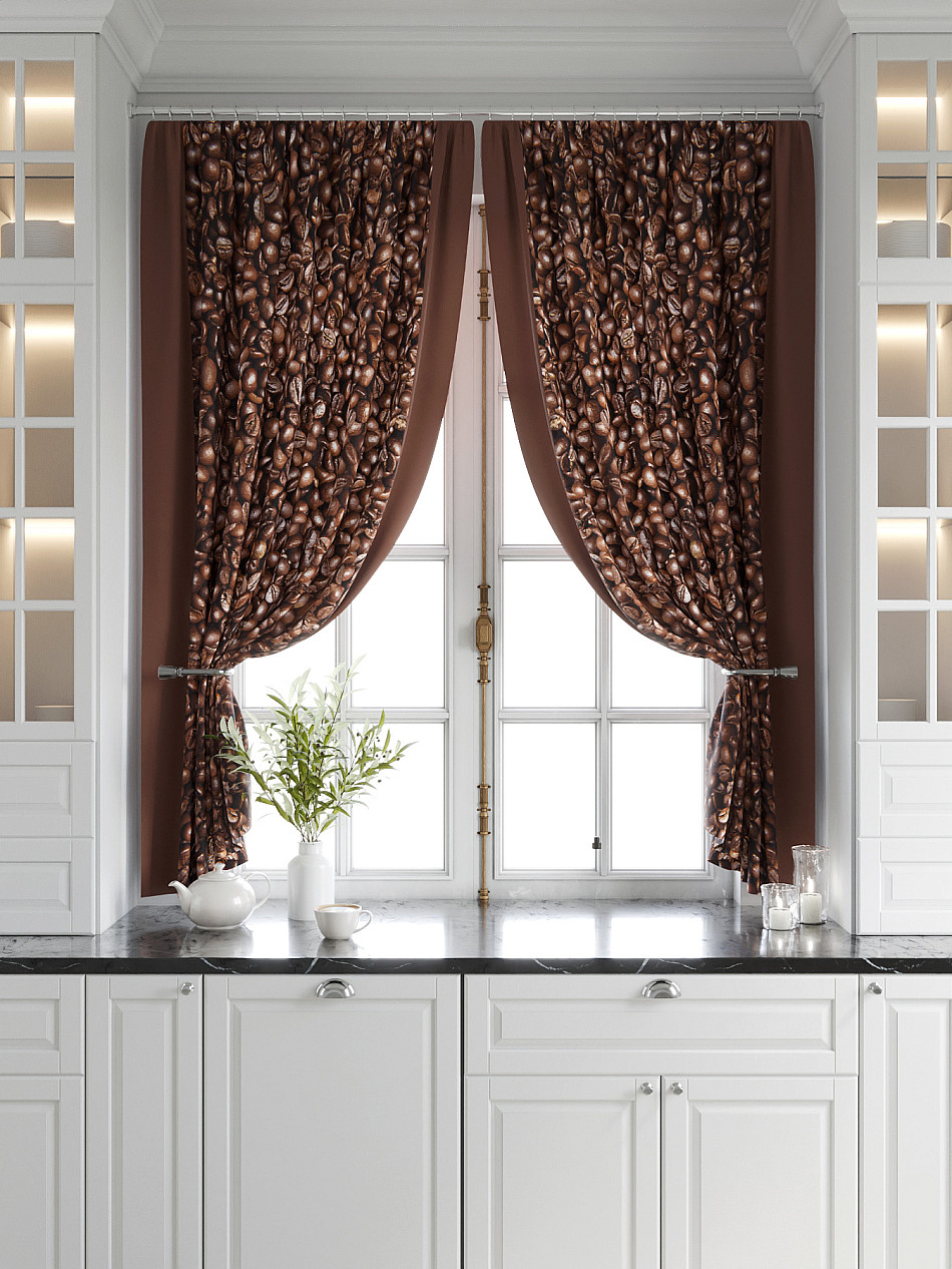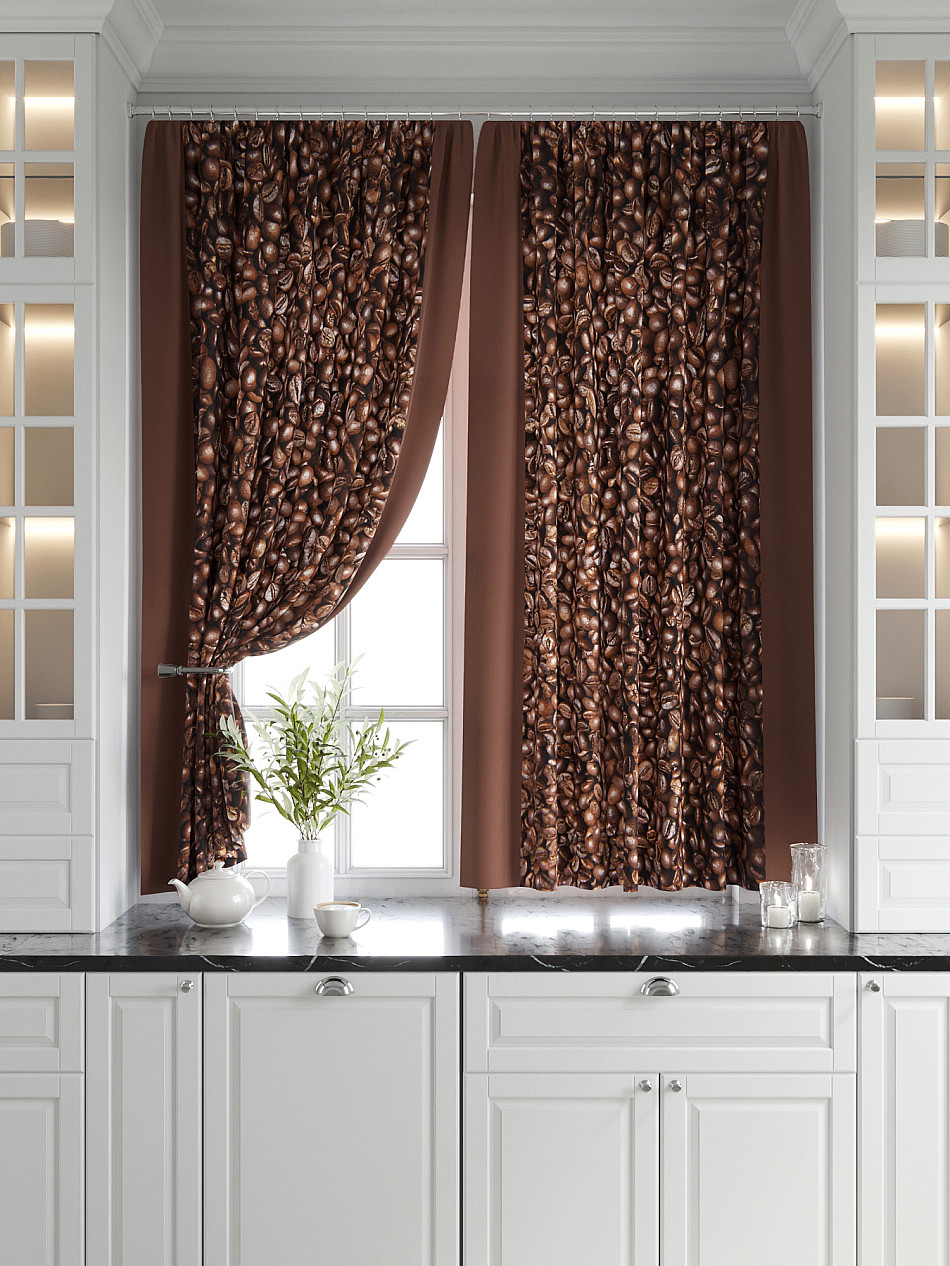 - Шторы с рисунком кофе для кухни