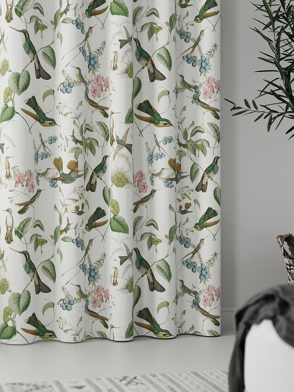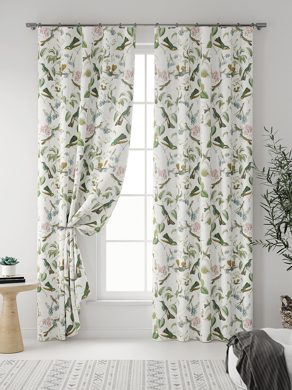 Комплект штор из легкой портьерной ткани (габардин) оформлен печатным рисунком. Печатный рисунок дает широкие возможности обновить интерьер фактически нет требуя ремонта за счет огромного выбора. Ткани с печатным рисунком безопасны и не содержат токсичных веществ. Не смотря на то что, материал легкий, он имеет высокую плотность, мало загрязнятся и не требует особого ухода даже после стирки, что важно для кухонных занавесок. Шторы не выцветают, не растягиваются, превосходно драпируются, образуя струящиеся складки. Прекрасное решение для создания красоты и уюта с помощью уникальных дизайнов.