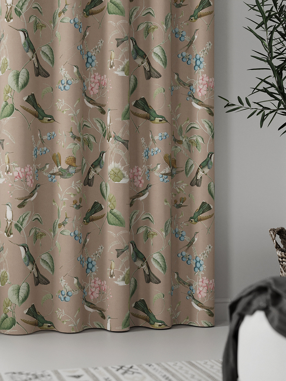 Комплект штор из легкой портьерной ткани (габардин) оформлен печатным рисунком. Печатный рисунок дает широкие возможности обновить интерьер фактически нет требуя ремонта за счет огромного выбора. Ткани с печатным рисунком безопасны и не содержат токсичных веществ. Не смотря на то что, материал легкий, он имеет высокую плотность, мало загрязнятся и не требует особого ухода даже после стирки, что важно для кухонных занавесок. Шторы не выцветают, не растягиваются, превосходно драпируются, образуя струящиеся складки. Прекрасное решение для создания красоты и уюта с помощью уникальных дизайнов.