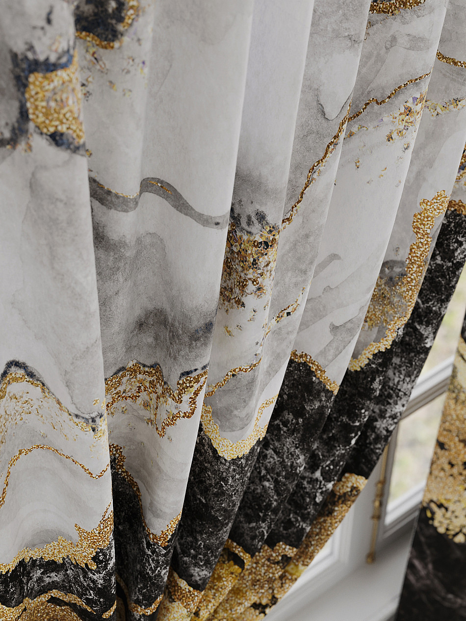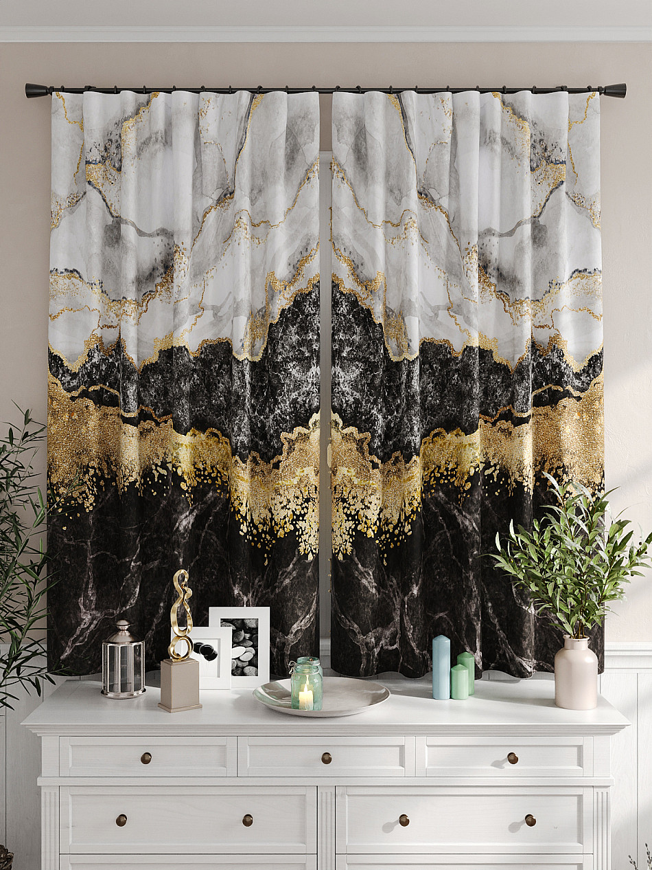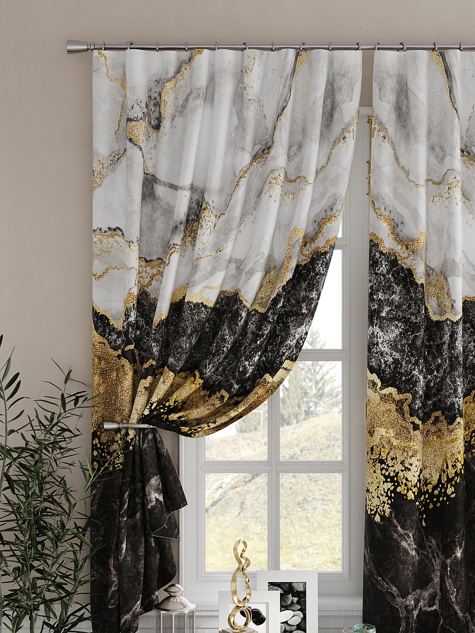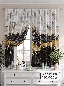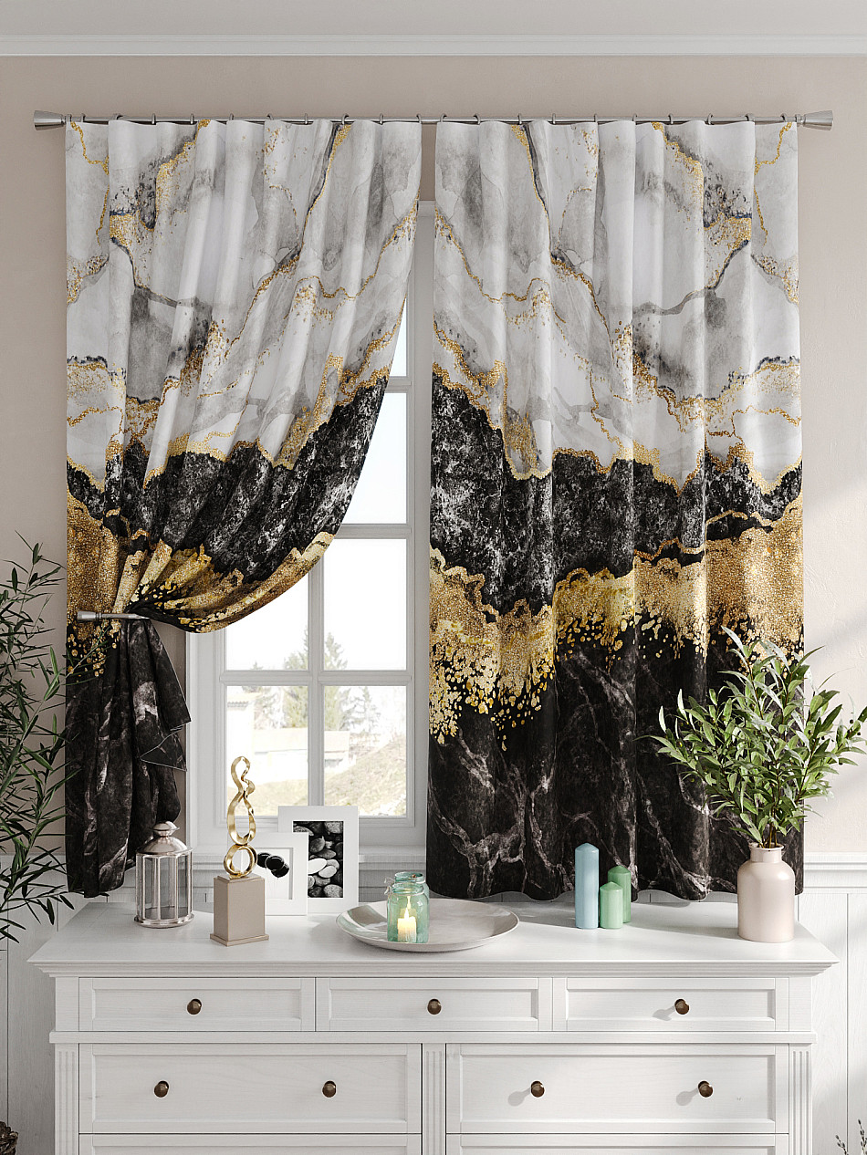 Портьеры 2 шт. Комплект штор из легкой портьерной ткани (габардин) оформлен печатным рисунком. Печатный рисунок дает широкие возможности обновить интерьер фактически не требуя ремонта за счет огромного выбора. Ткани с печатным рисунком безопасны и не содержат токсичных веществ. Не смотря на то, что материал легкий, он имеет высокую плотность, мало загрязнятся и не требует особого ухода даже после стирки, что важно для кухонных занавесок. Шторы не выцветают, не растягиваются, превосходно драпируются, образуя струящиеся складки. Прекрасное решение для создания красоты и уюта с помощью уникальных дизайнов.