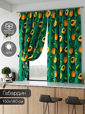 Комплект штор из легкой портьерной ткани (габардин) оформлен печатным рисунком. Печатный рисунок дает широкие возможности обновить интерьер фактически нет требуя ремонта за счет огромного выбора. Ткани с печатным рисунком безопасны и не содержат токсичных веществ. Не смотря на то что, материал легкий, он имеет высокую плотность, мало загрязнятся и не требует особого ухода даже после стирки, что важно для кухонных занавесок. Шторы не выцветают, не растягиваются, превосходно драпируются, образуя струящиеся складки. Прекрасное решение для создания красоты и уюта с помощью уникальных дизайнов.