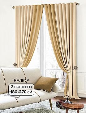 ВыбратьКомплект штор из мягкой ткани (Велюр) молочно-песочного цвета. Портьеры имеют стачной шов по вертикали, который после драпировки уходит в складку и становится невидимым. Велюр, приятный на ощупь, имеет ворсистую поверхность, прекрасно драпируется, образуя округлые складки. Ткань неприхотлива в уходе, возможна деликатная стирка.