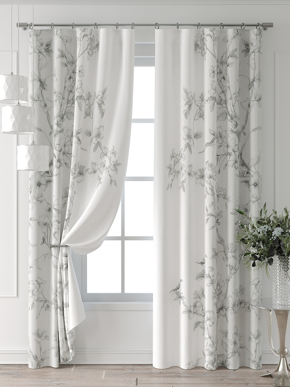 Портьера 2 шт. Подхват - доп.услуга. Комплект штор из легкой портьерной ткани (габардин) оформлен печатным рисунком. Печатный рисунок дает широкие возможности обновить интерьер фактически нет требуя ремонта за счет огромного выбора. Ткани с печатным рисунком безопасны и не содержат токсичных веществ. Не смотря на то что, материал легкий, он имеет высокую плотность, мало загрязнятся и не требует особого ухода даже после стирки, что важно для кухонных занавесок. Шторы не выцветают, не растягиваются, превосходно драпируются, образуя струящиеся складки. Прекрасное решение для создания красоты и уюта с помощью уникальных дизайнов.