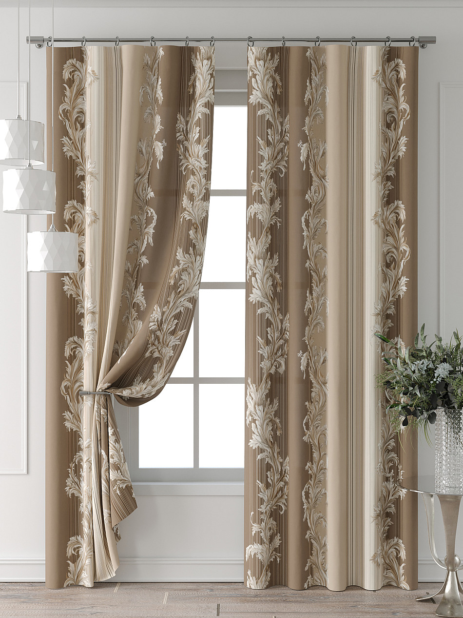 Портьера 2 шт. Подхват - доп.услуга. Комплект штор из легкой портьерной ткани (габардин) оформлен печатным рисунком. Печатный рисунок дает широкие возможности обновить интерьер фактически нет требуя ремонта за счет огромного выбора. Ткани с печатным рисунком безопасны и не содержат токсичных веществ. Не смотря на то что, материал легкий, он имеет высокую плотность, мало загрязнятся и не требует особого ухода даже после стирки, что важно для кухонных занавесок. Шторы не выцветают, не растягиваются, превосходно драпируются, образуя струящиеся складки. Прекрасное решение для создания красоты и уюта с помощью уникальных дизайнов.